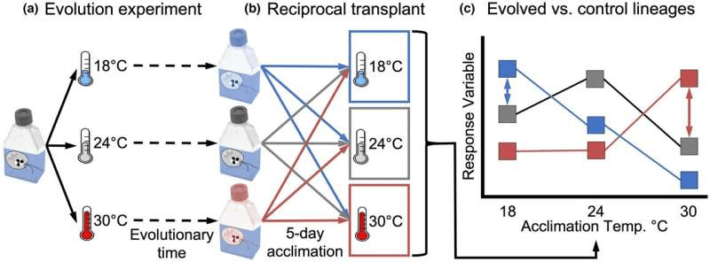 That said, each of the experimental populations were better adapted to their conditions compared to the control group. For instance, the hot groups grew faster and made better use of carbon at high temperatures than the control group did under the same conditions.