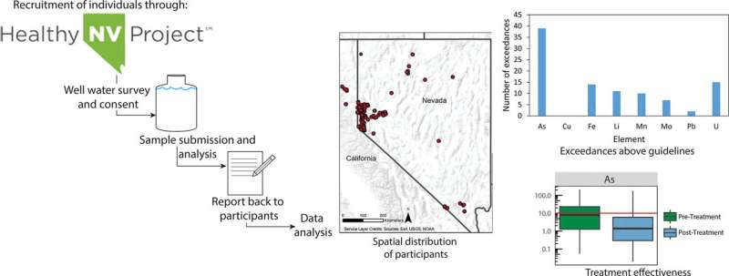 Scientists from DRI and the University of Hawaii Cancer Center recruited households with private wells through the Healthy Nevada Project. Households were sent free water testing kits, and participants were notified of their water quality results and recommended actions they could take. More than 170 households participated in the research, with the majority from Northern Nevada around Reno, Carson City and Fallon.
