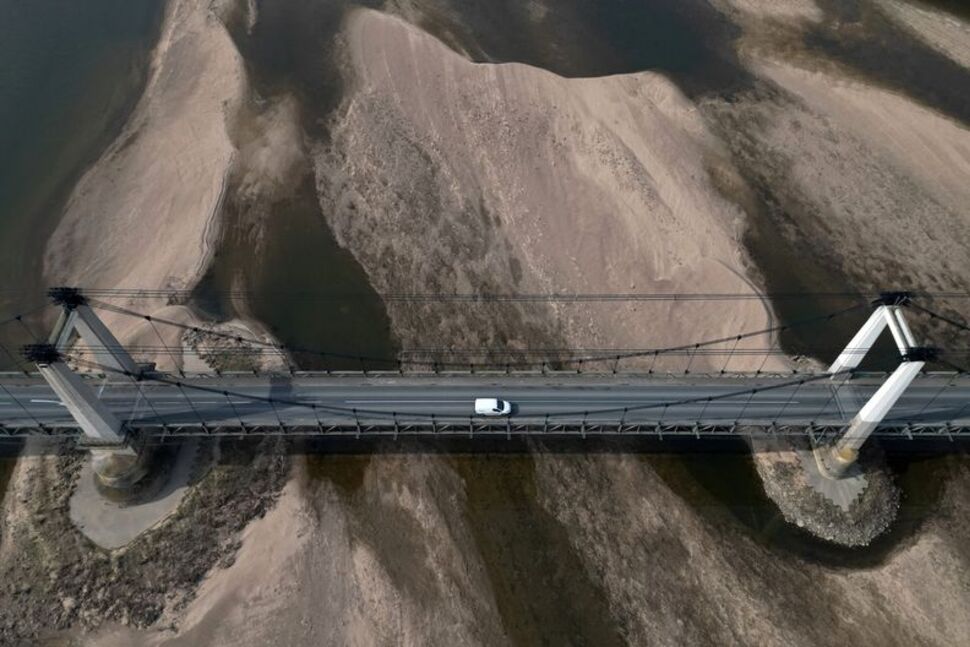 A view shows a bridge and sandbanks of the Loire River in Montjean-sur-Loire, as France faces records winter dry spell raising fears of another summer of droughts and water restrictions