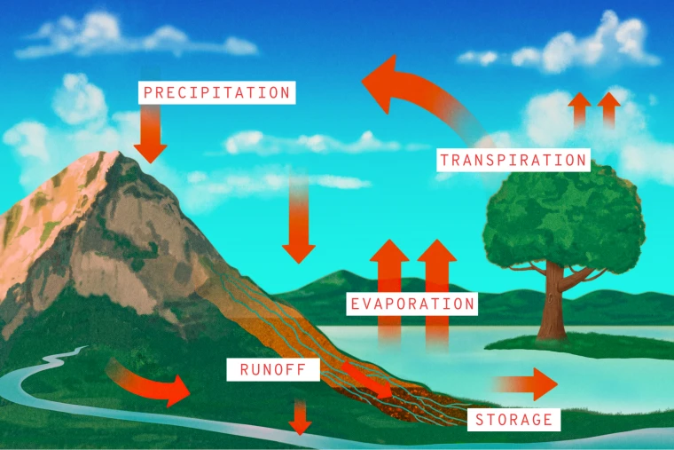 Below, we walk through these crucial steps — precipitation, evaporation, transpiration, runoff and storage — to illustrate how climate change is already changing our environment in ways that are affecting millions of people across the U.S.