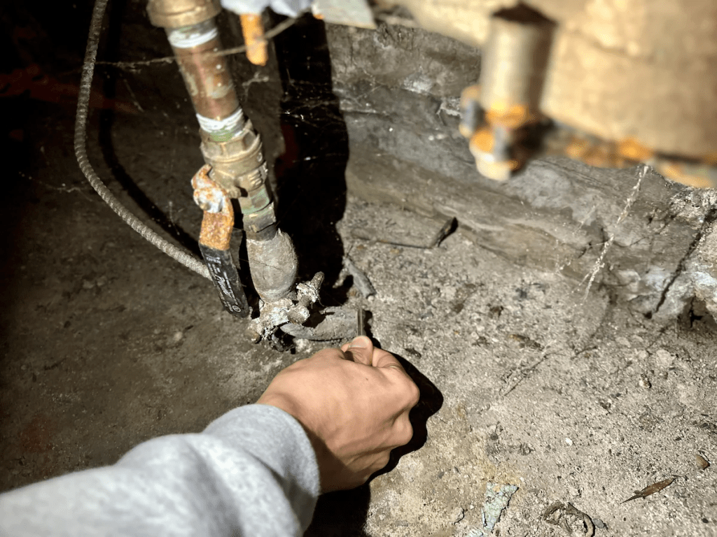 When they moved in two years ago, college students Rodewald and Schmidt didn’t know the water that served their home came from lead service lines. Earlier this week, Rodewald used a key to gently scratch the metal pipe that feeds water throughout the house for the first time. Shiny, silver streaks appeared. It was a lead pipe.