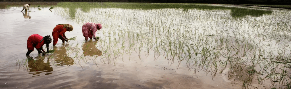 A bit further downstream, farmers transplant rice paddies, standing knee deep and without any protection in untreated wastewater. The head farmer explained that skin diseases are an issue at times. But he appreciates the fertilizing qualities of the untreated wastewater and the money he saves.