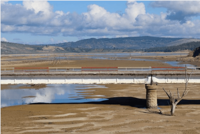 A view shows a bridge over Sidi El Barrak dam with depleted levels of water, in Nafza, west of the capital Tunis, Tunisia